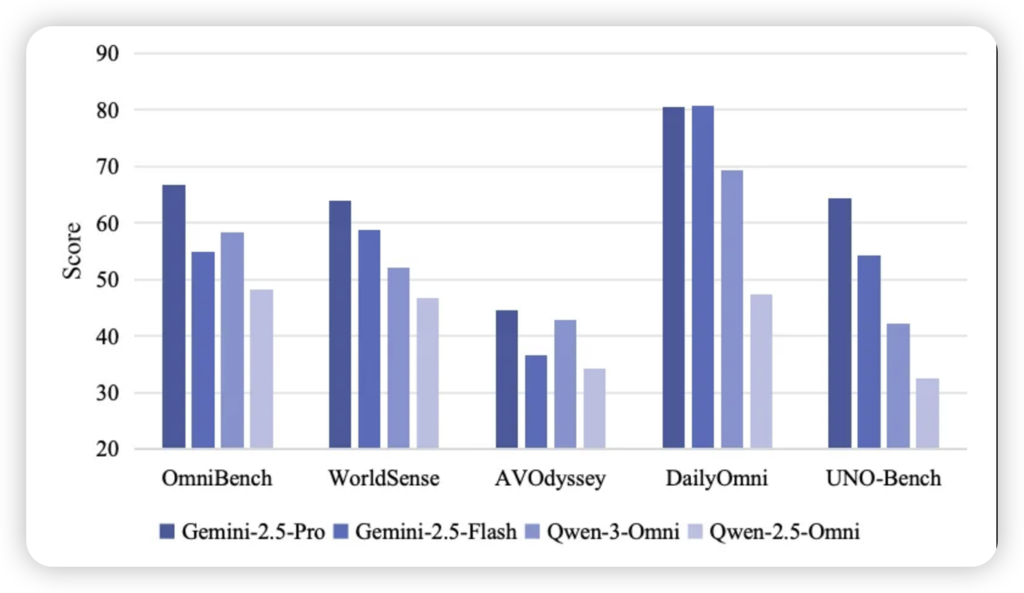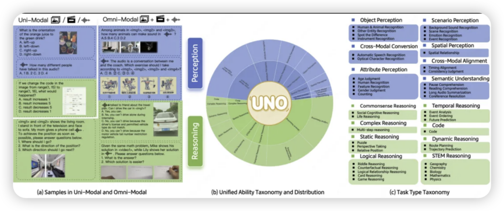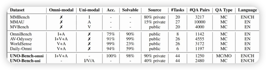 UNO-Bench正是在这样的背景下应运而生,它旨在通过一个统一的框架,系统性地评估模型在单模态与全模态任务中的理解能力,并探索其间的内在规律。
