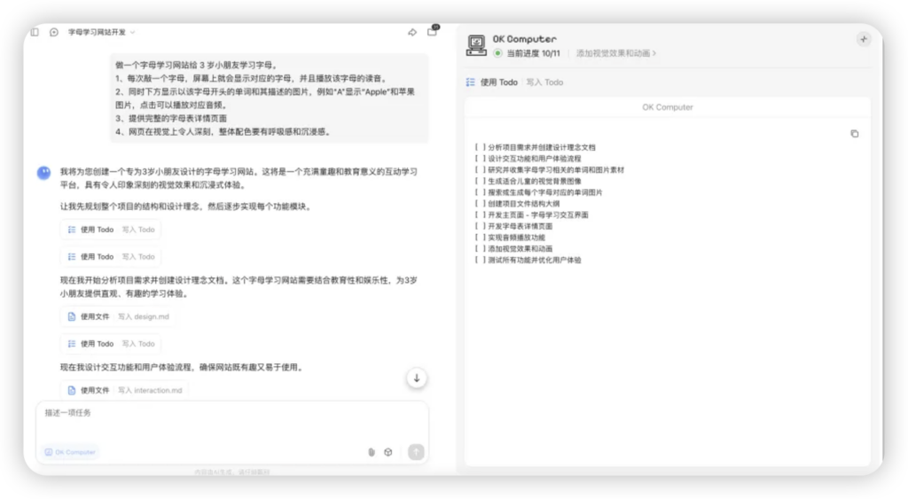 据早期体验的科技媒体反馈,“OK Computer”在处理复杂任务时,展现出了强大的规划性、高度的自主性和令人满意的完成度。它在任务开始前制定的“待办清单”清晰明了,整个执行过程无需用户过多干预,最终交付的成果也基本达到了可用的水平。比如,在分析英伟达股价并模拟投资策略的任务中,它能自动抓取数据、完成回测并生成完整的分析网站。