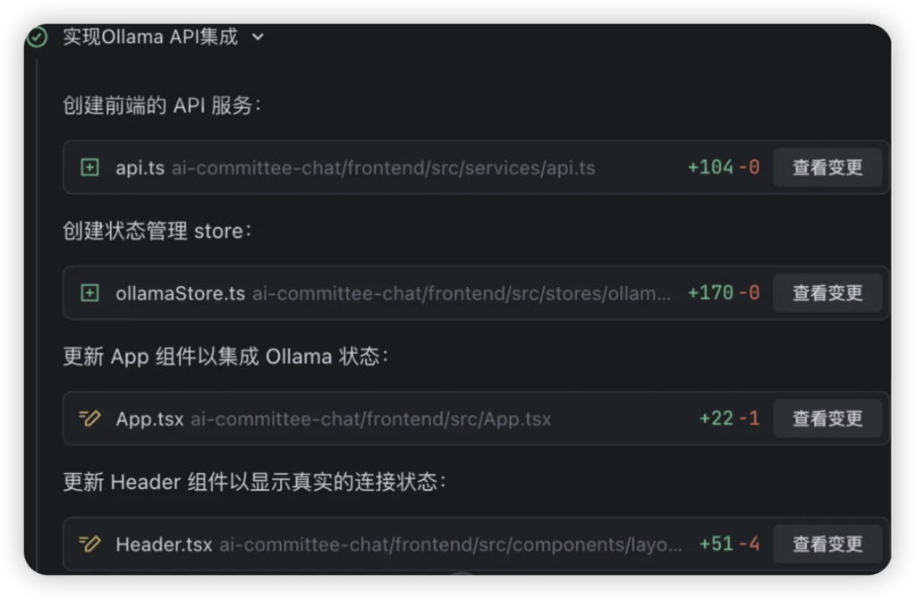 • 代码变更视图:所有代码的改动都会以清晰的Diff视图呈现,你对AI做出的每处修改都心知肚明,掌控感十足。