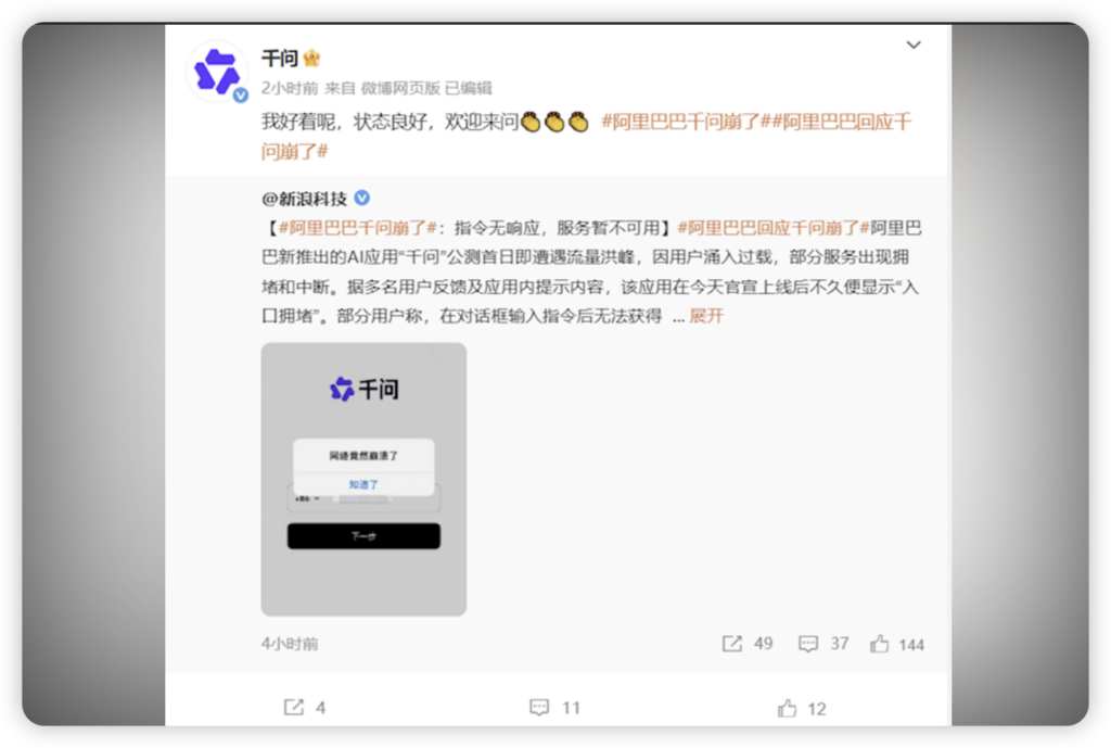 然而,这条赛道并非坦途。公测首日,用户涌入带来的服务拥堵,便提前敲响了警钟。在大规模高并发访问面前,应用的稳定性是决定用户体验的关键。此外,当前的C端AI助手市场早已是群雄逐鹿,用户忠诚度普遍不高,千问能否凭借其卓越的体验和深度整合的能力,真正俘获用户的心,形成强大的用户黏性,将是这场“未来之战”的胜负手。