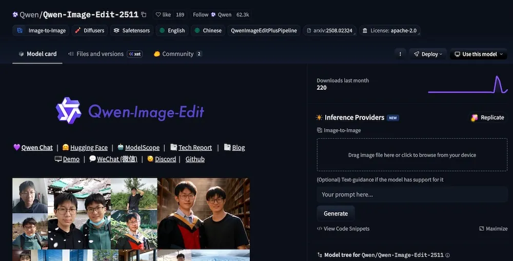 目前模型已经在Hugging Face和ModelScope开源,也有现成的Demo可以体验。如果你手头有一块还不错的显卡,或者习惯在云端跑模型,强烈建议你把2509升级到2511。毕竟,能听懂人话还能把人修得好看的AI,谁不爱呢?