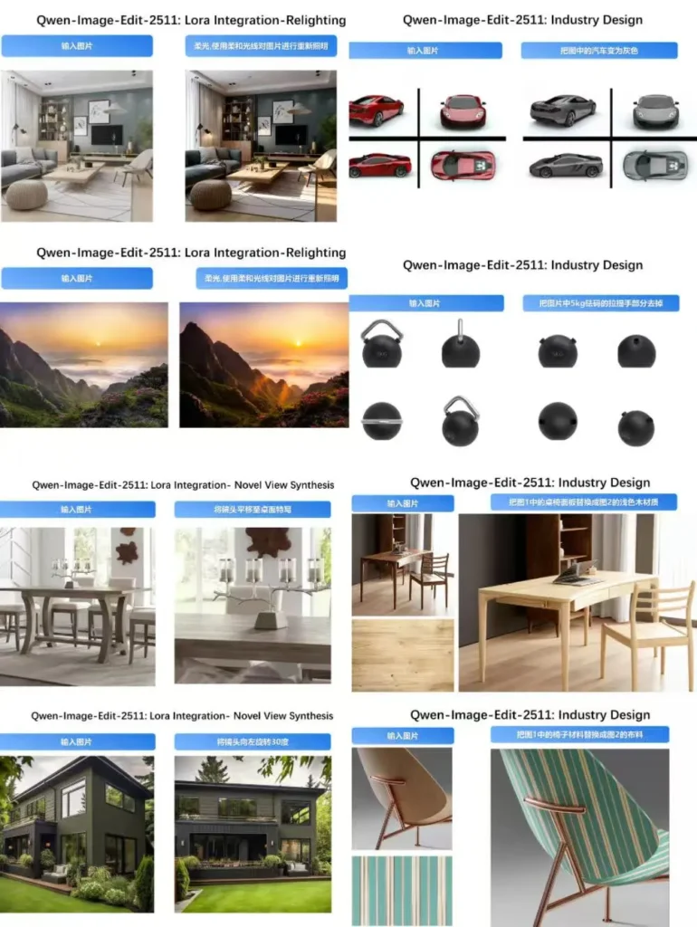 这就像是买相机直接送了全套滤镜和镜头。模型内部集成了一些社区最高频使用的LoRA模块。你可以直接通过自然语言指令调用“光照增强”,让一张平平无奇的室内照片拥有柔光或侧光的高级质感;或者在工业设计场景中,一键把椅子的材质从塑料换成胡桃木,而结构纹丝不动。这种“开箱即用”的体验,极大地降低了使用的门槛。