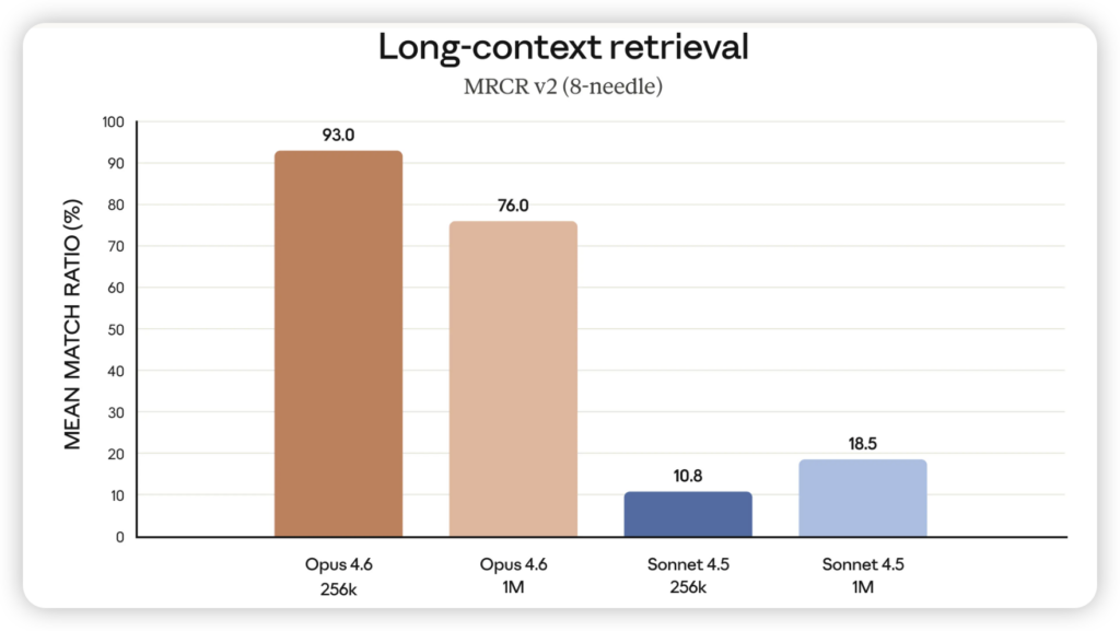 配合这种工程能力的,是 Opus 4.6 终于开放测试的 100万 Token 上下文窗口。