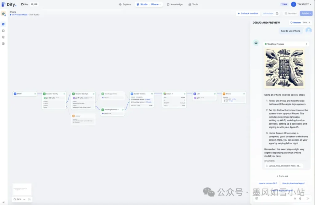 - Chatflow:专为对话场景而设计,包括客户服务、语义搜索和其他在响应构建中需要多步骤逻辑的对话应用程序。