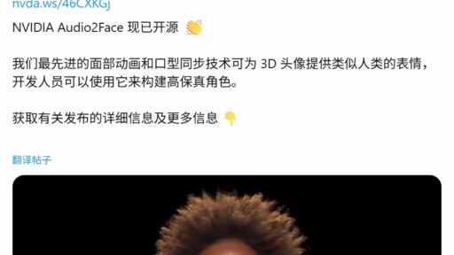最近,整个AI圈都对一则重磅消息引起了广泛关注:英伟达,这位在AI算力领域叱咤风云的巨头,正式开源了其生成式AI面部动画模型 Audio2Face(A2F)。这无疑是给虚拟角色创作领域送上的一份厚礼,它意味着给数字生命注入灵魂,将变得前所未有的简单和高效。 核心魔法:听声辨情,以声塑形 想象一下,你只需对着麦克风说几句话,屏幕上的虚拟角色就能立即同步地动嘴、眨眼、皱眉,甚至精确表达出喜怒哀乐。这听起来像魔法,而Audio2Face正是实现这魔法的幕后推手。 它的核心能力在于深度分析音频中的音素、语调乃至情感内容等声…